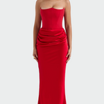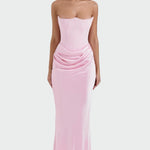 Elegantní večerní maxi šaty bez ramínek nabízejí jemný a sofistikovaný vzhled pro každou postavu. Těsný střih zvýrazní křivky a zároveň umožní pohodlný pohyb po celý večer. Maxi délka dodává nadčasovou eleganci a hodí se pro slavnostní i formální příležitosti. Detaily plisé v pase dodávají šatům ženský šarm a jemný tok při každém kroku.